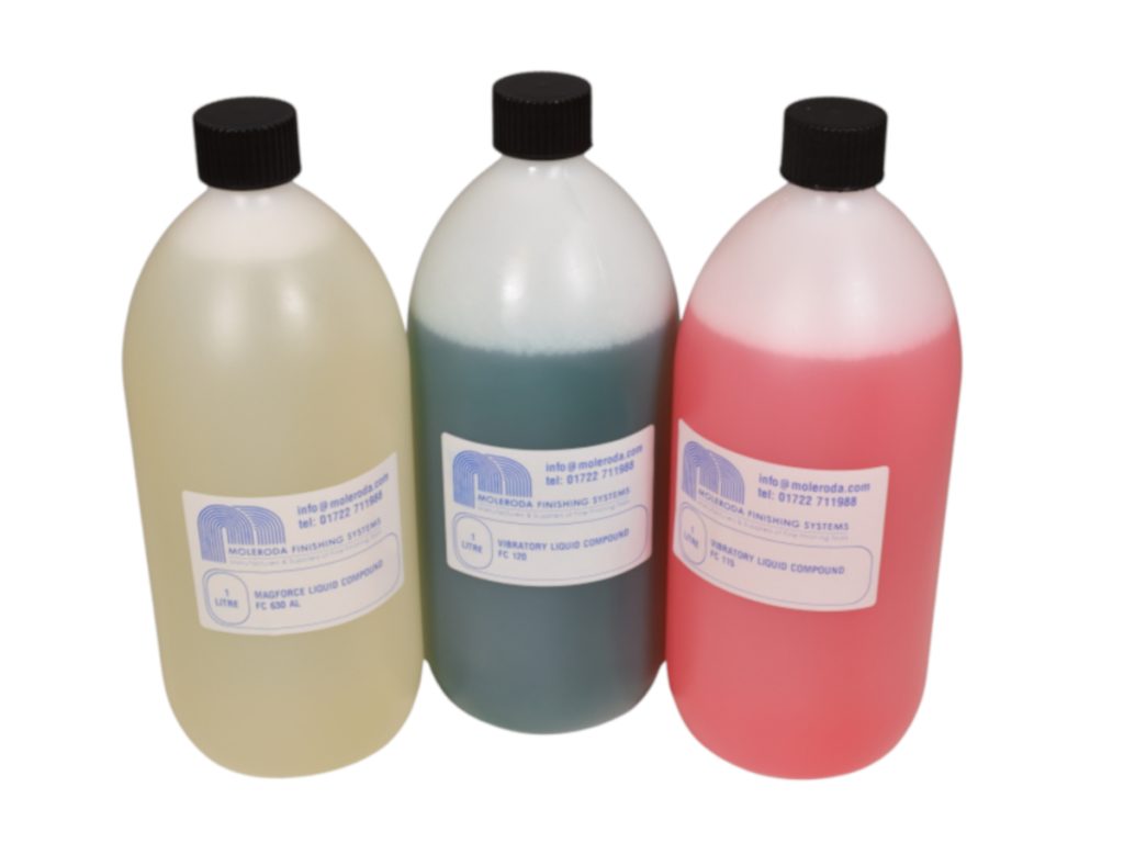 Choosing the right liquid compound is critical for achieving the desired finish, protecting parts, and extending media life. Moleroda offers MagForce Magnetic Finishing Compound (FC630AL), and Rösler’s FC115 and FC120, each suited to different finishing goals.