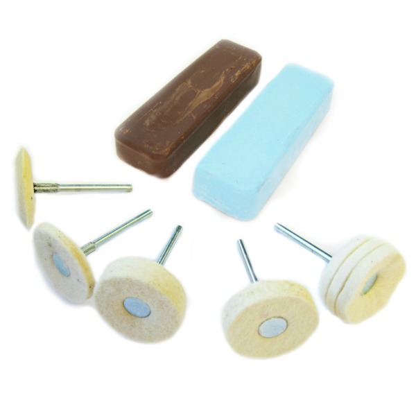 These kits are a good seection of wheels to do perhaps a small amount of polishing. Choose the compound to suit the metal you are working on.